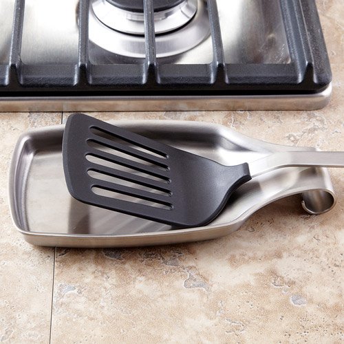 Made of high-quality 18/8 stainless steel, Amco's spatula spoon rest is the perfect place to set utensils while cooking. Its attractive design is a great addition to any kitchen counter.