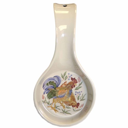 This melamine 4"x 8" spoon rest features Corelle's licensed rooster pattern, Country Morning.